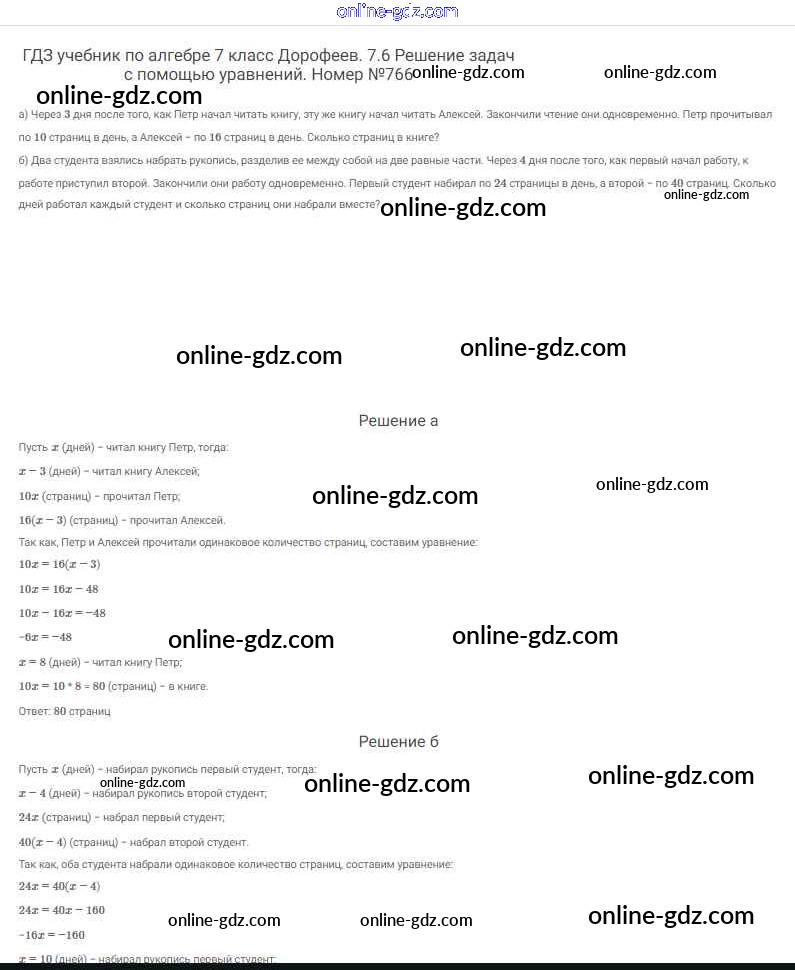 Готовые домашние задания по Алгебре за 7 класс Учебник Дорофеев, Суворова Академический школьный учебник 2020 - Упражнения 766