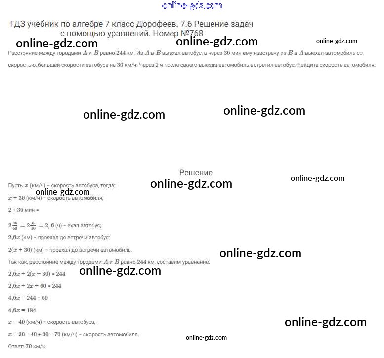 Готовые домашние задания по Алгебре за 7 класс Учебник Дорофеев, Суворова Академический школьный учебник 2020 - Упражнения 768