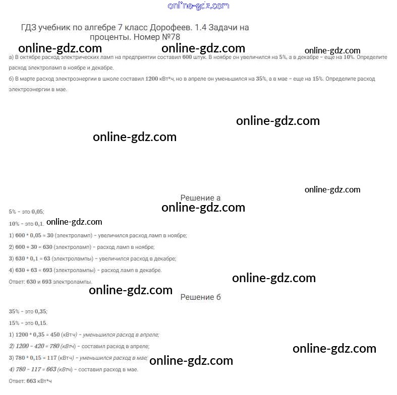 Готовые домашние задания по Алгебре за 7 класс Учебник Дорофеев, Суворова Академический школьный учебник 2020 - Упражнения 78