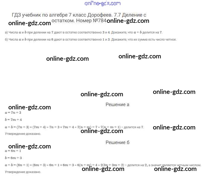 Готовые домашние задания по Алгебре за 7 класс Учебник Дорофеев, Суворова Академический школьный учебник 2020 - Упражнения 784