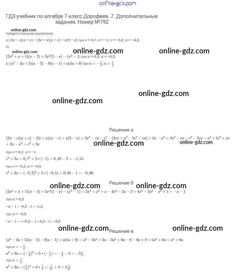 Готовые домашние задания по Алгебре за 7 класс Учебник Дорофеев, Суворова Академический школьный учебник 2020 - Упражнения 792