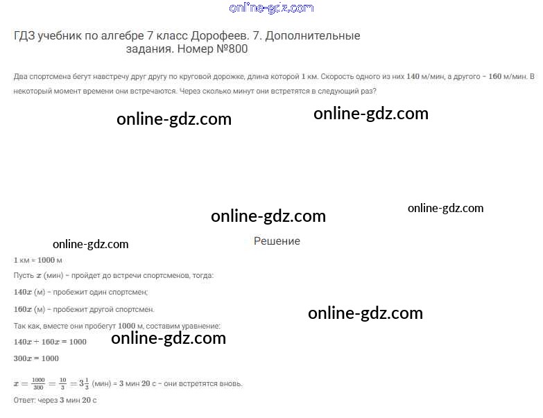 Готовые домашние задания по Алгебре за 7 класс Учебник Дорофеев, Суворова Академический школьный учебник 2020 - Упражнения 800