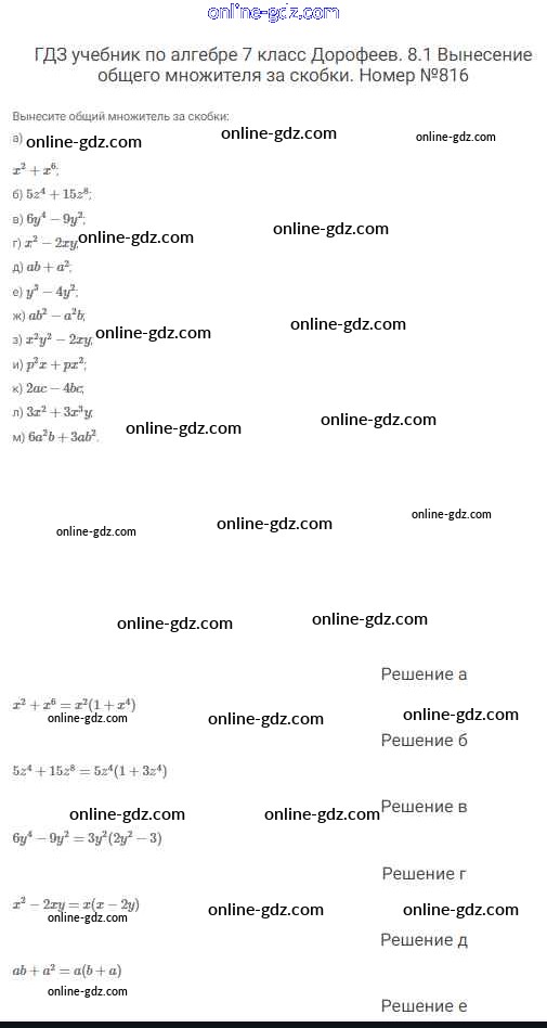 Готовые домашние задания по Алгебре за 7 класс Учебник Дорофеев, Суворова Академический школьный учебник 2020 - Упражнения 816