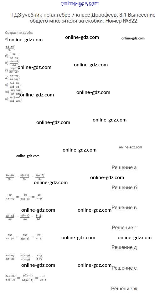 Готовые домашние задания по Алгебре за 7 класс Учебник Дорофеев, Суворова Академический школьный учебник 2020 - Упражнения 822