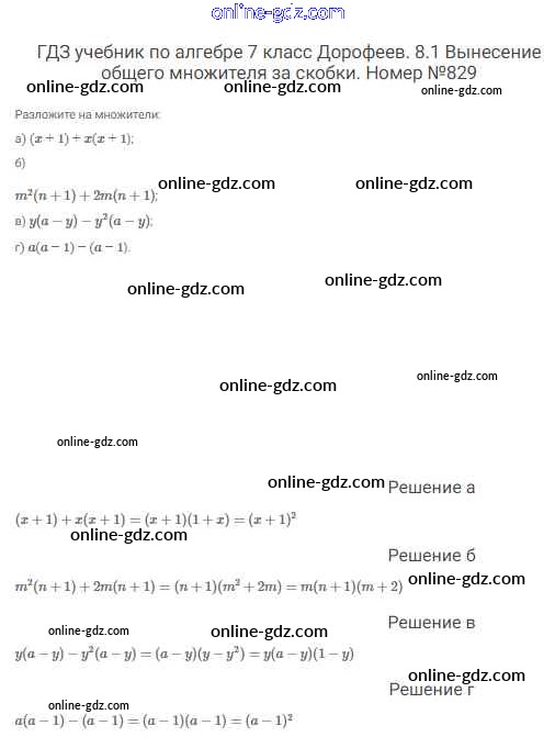 Готовые домашние задания по Алгебре за 7 класс Учебник Дорофеев, Суворова Академический школьный учебник 2020 - Упражнения 829