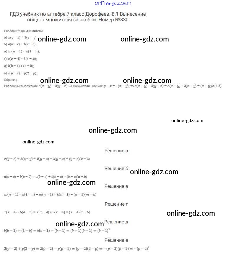 Готовые домашние задания по Алгебре за 7 класс Учебник Дорофеев, Суворова Академический школьный учебник 2020 - Упражнения 830