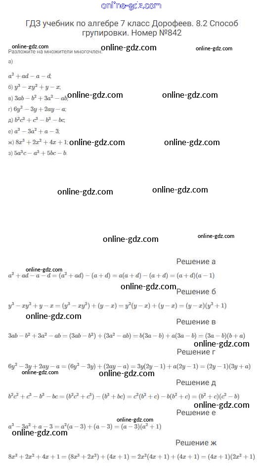 Готовые домашние задания по Алгебре за 7 класс Учебник Дорофеев, Суворова Академический школьный учебник 2020 - Упражнения 842