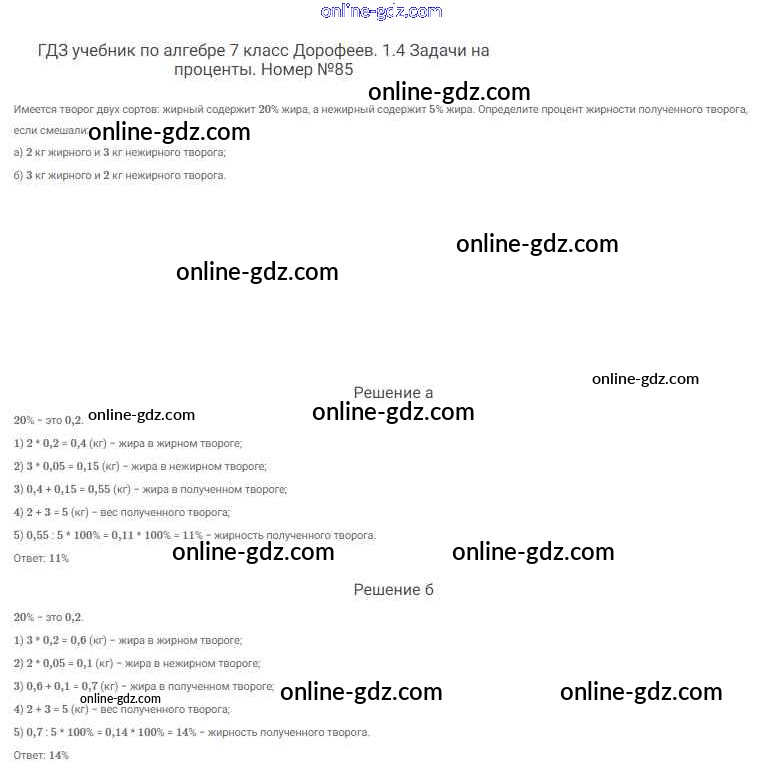 Готовые домашние задания по Алгебре за 7 класс Учебник Дорофеев, Суворова Академический школьный учебник 2020 - Упражнения 85