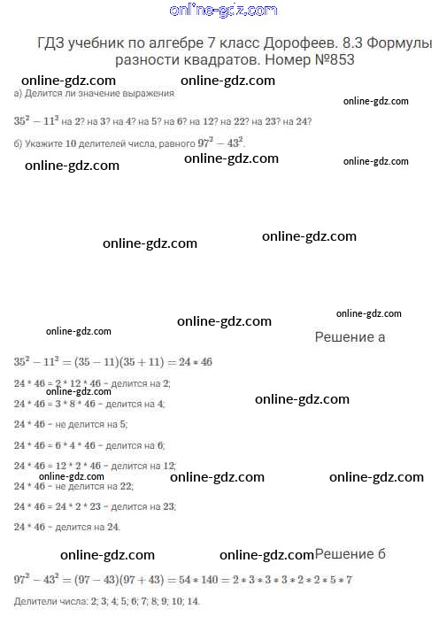 Готовые домашние задания по Алгебре за 7 класс Учебник Дорофеев, Суворова Академический школьный учебник 2020 - Упражнения 853
