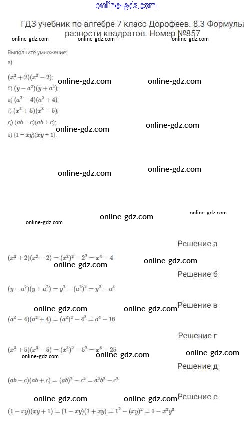 Готовые домашние задания по Алгебре за 7 класс Учебник Дорофеев, Суворова Академический школьный учебник 2020 - Упражнения 857