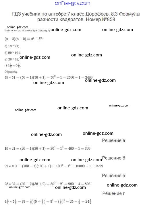 Готовые домашние задания по Алгебре за 7 класс Учебник Дорофеев, Суворова Академический школьный учебник 2020 - Упражнения 858