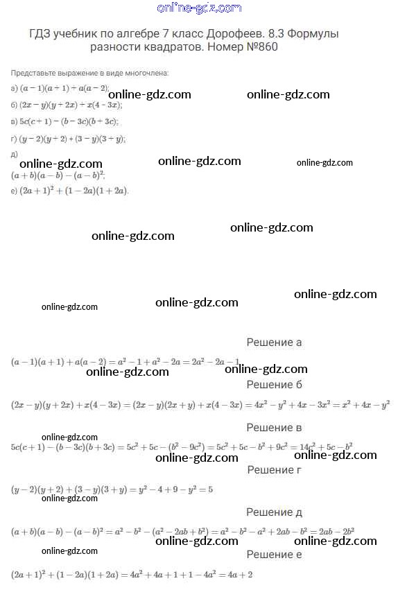 Готовые домашние задания по Алгебре за 7 класс Учебник Дорофеев, Суворова Академический школьный учебник 2020 - Упражнения 860