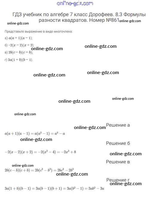 Готовые домашние задания по Алгебре за 7 класс Учебник Дорофеев, Суворова Академический школьный учебник 2020 - Упражнения 861