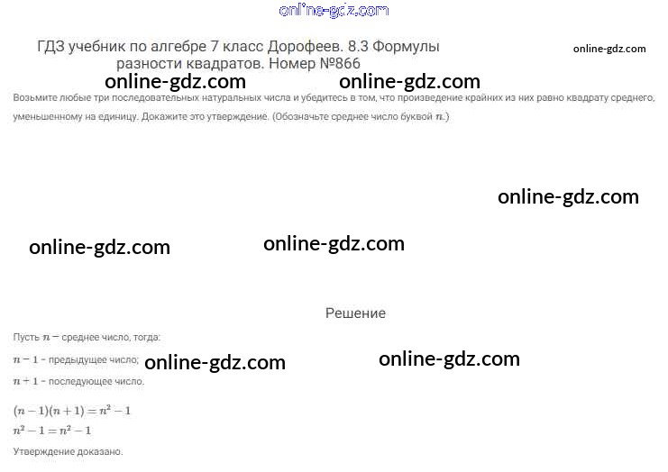 Готовые домашние задания по Алгебре за 7 класс Учебник Дорофеев, Суворова Академический школьный учебник 2020 - Упражнения 866