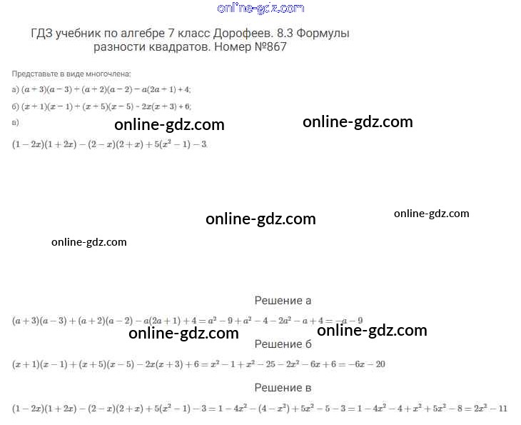 Готовые домашние задания по Алгебре за 7 класс Учебник Дорофеев, Суворова Академический школьный учебник 2020 - Упражнения 867