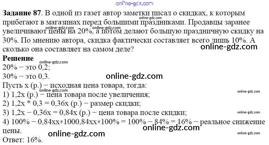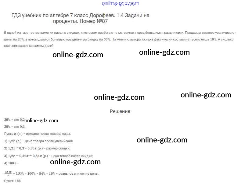 Готовые домашние задания по Алгебре за 7 класс Учебник Дорофеев, Суворова Академический школьный учебник 2020 - Упражнения 87