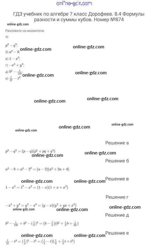 Готовые домашние задания по Алгебре за 7 класс Учебник Дорофеев, Суворова Академический школьный учебник 2020 - Упражнения 874