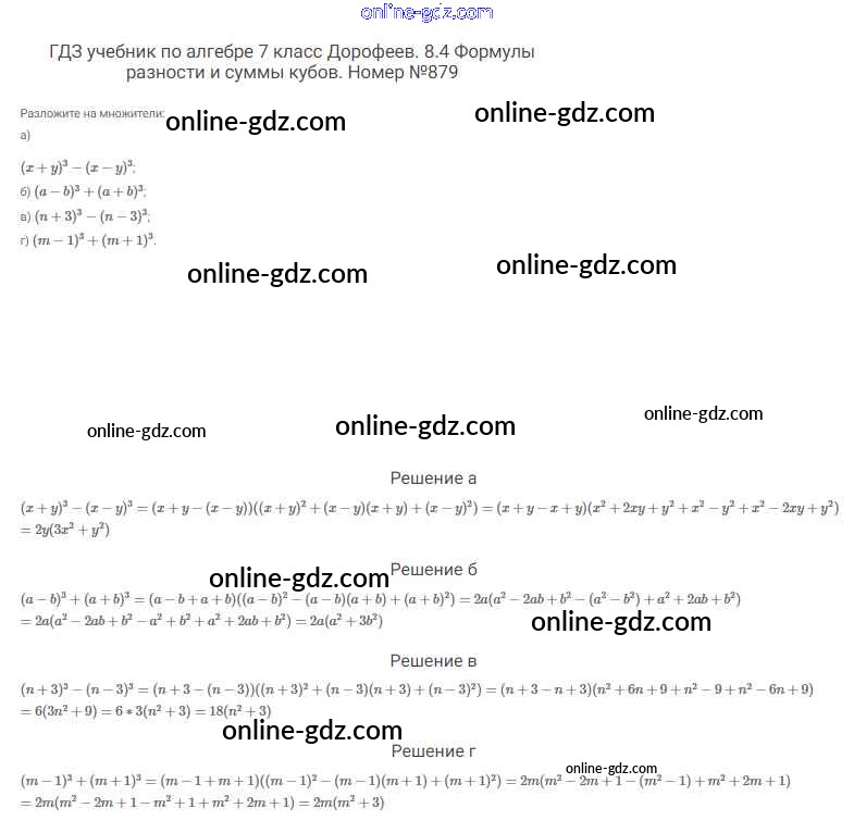 Готовые домашние задания по Алгебре за 7 класс Учебник Дорофеев, Суворова Академический школьный учебник 2020 - Упражнения 879