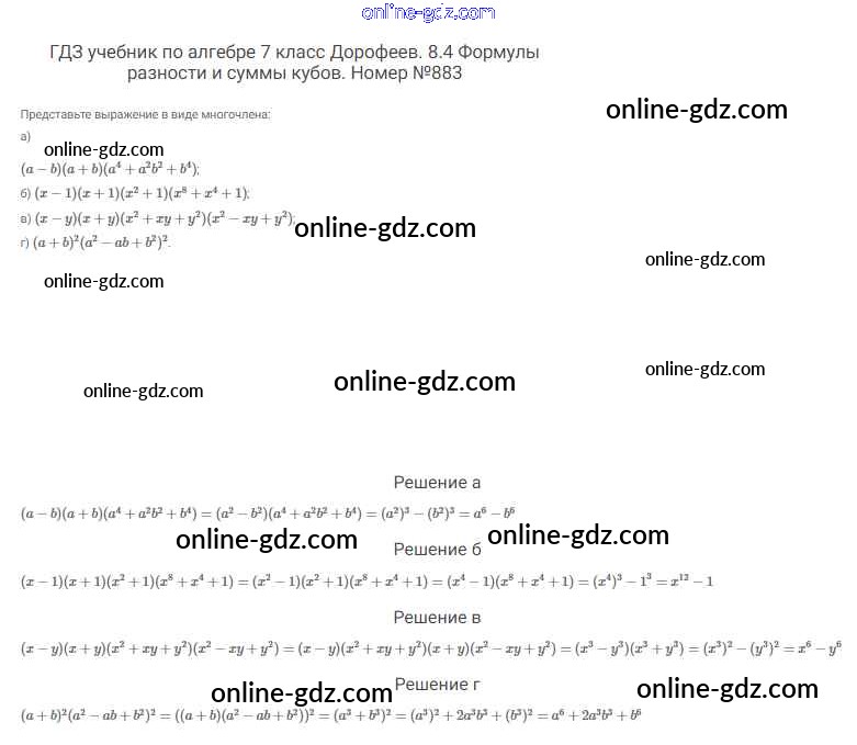 Готовые домашние задания по Алгебре за 7 класс Учебник Дорофеев, Суворова Академический школьный учебник 2020 - Упражнения 883