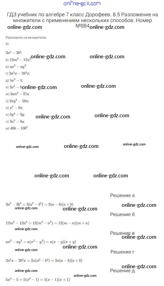 Готовые домашние задания по Алгебре за 7 класс Учебник Дорофеев, Суворова Академический школьный учебник 2020 - Упражнения 884