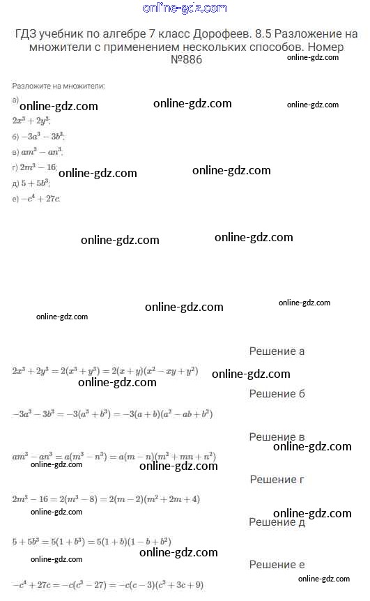 Готовые домашние задания по Алгебре за 7 класс Учебник Дорофеев, Суворова Академический школьный учебник 2020 - Упражнения 886
