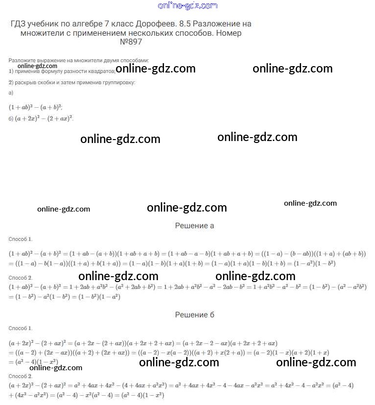 Готовые домашние задания по Алгебре за 7 класс Учебник Дорофеев, Суворова Академический школьный учебник 2020 - Упражнения 897
