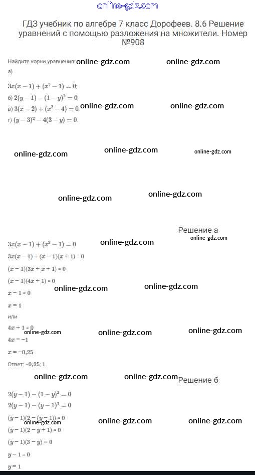 Готовые домашние задания по Алгебре за 7 класс Учебник Дорофеев, Суворова Академический школьный учебник 2020 - Упражнения 908
