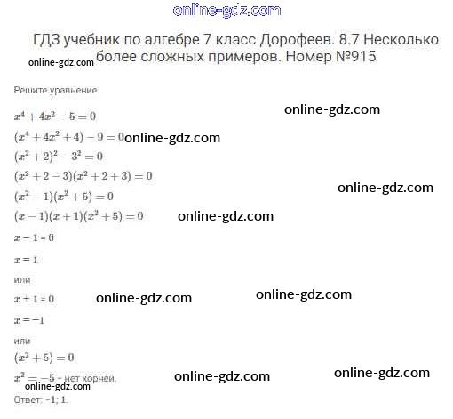 Готовые домашние задания по Алгебре за 7 класс Учебник Дорофеев, Суворова Академический школьный учебник 2020 - Упражнения 915