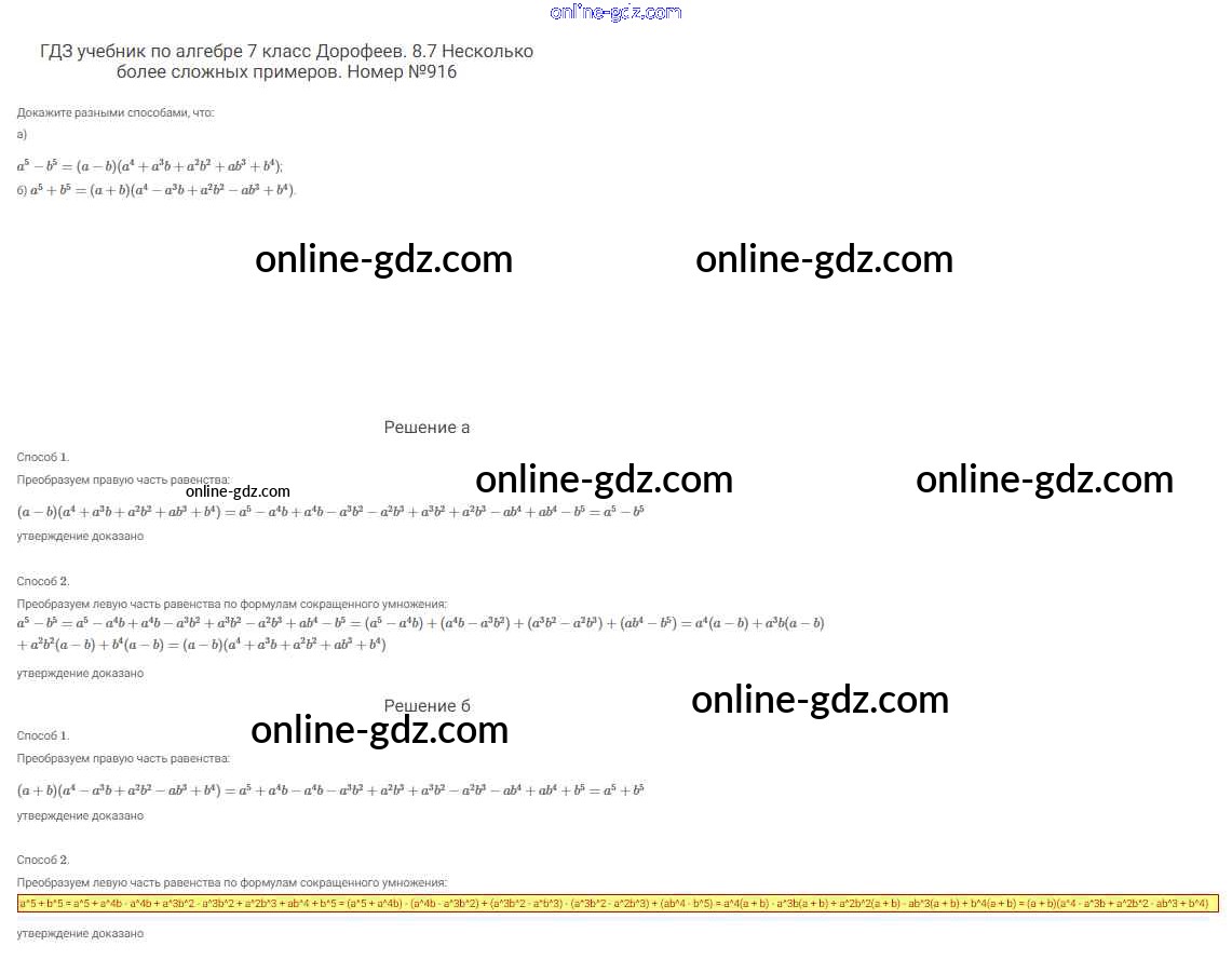 Готовые домашние задания по Алгебре за 7 класс Учебник Дорофеев, Суворова Академический школьный учебник 2020 - Упражнения 916
