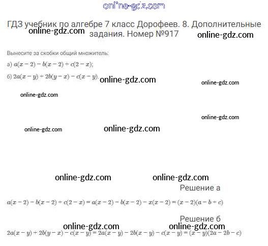 Готовые домашние задания по Алгебре за 7 класс Учебник Дорофеев, Суворова Академический школьный учебник 2020 - Упражнения 917