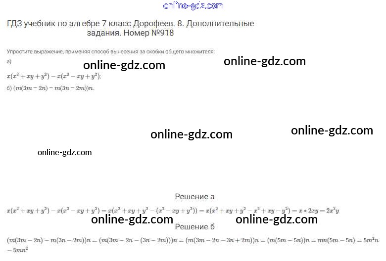 Готовые домашние задания по Алгебре за 7 класс Учебник Дорофеев, Суворова Академический школьный учебник 2020 - Упражнения 918