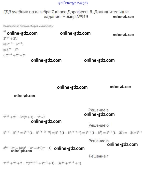 Готовые домашние задания по Алгебре за 7 класс Учебник Дорофеев, Суворова Академический школьный учебник 2020 - Упражнения 919