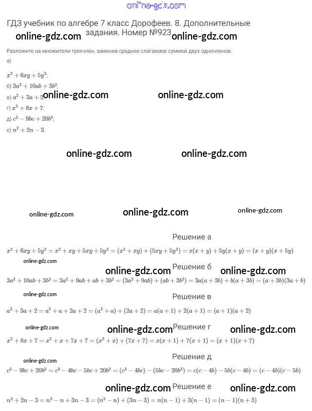 Готовые домашние задания по Алгебре за 7 класс Учебник Дорофеев, Суворова Академический школьный учебник 2020 - Упражнения 923