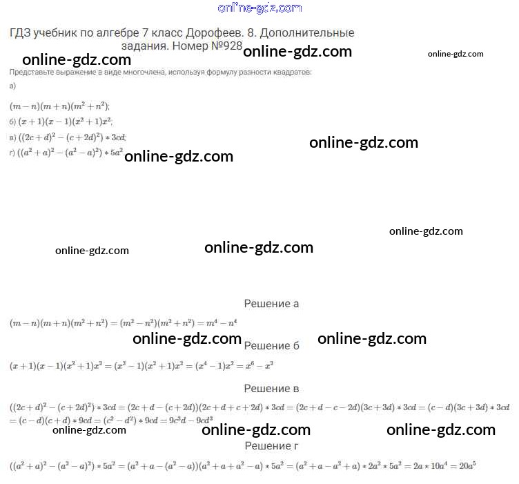 Готовые домашние задания по Алгебре за 7 класс Учебник Дорофеев, Суворова Академический школьный учебник 2020 - Упражнения 928