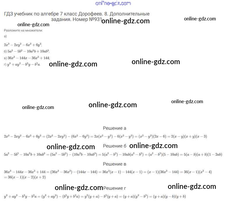 Готовые домашние задания по Алгебре за 7 класс Учебник Дорофеев, Суворова Академический школьный учебник 2020 - Упражнения 931