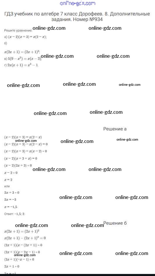 Готовые домашние задания по Алгебре за 7 класс Учебник Дорофеев, Суворова Академический школьный учебник 2020 - Упражнения 934