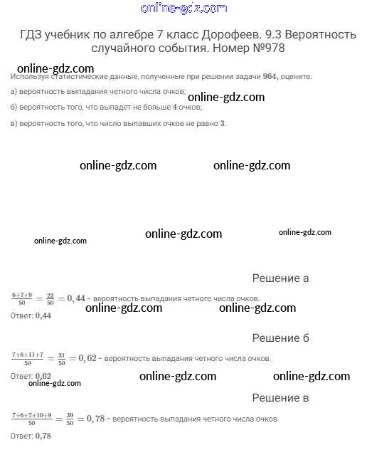 Готовые домашние задания по Алгебре за 7 класс Учебник Дорофеев, Суворова Академический школьный учебник 2020 - Упражнения 978