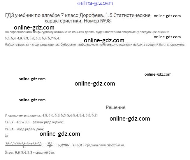 Готовые домашние задания по Алгебре за 7 класс Учебник Дорофеев, Суворова Академический школьный учебник 2020 - Упражнения 98