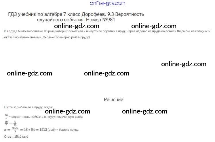 Готовые домашние задания по Алгебре за 7 класс Учебник Дорофеев, Суворова Академический школьный учебник 2020 - Упражнения 981