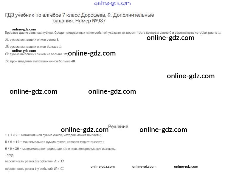 Готовые домашние задания по Алгебре за 7 класс Учебник Дорофеев, Суворова Академический школьный учебник 2020 - Упражнения 987