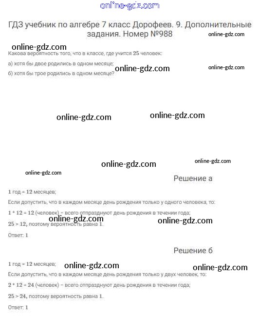 Готовые домашние задания по Алгебре за 7 класс Учебник Дорофеев, Суворова Академический школьный учебник 2020 - Упражнения 988
