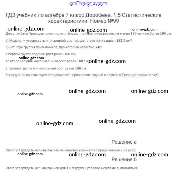 Готовые домашние задания по Алгебре за 7 класс Учебник Дорофеев, Суворова Академический школьный учебник 2020 - Упражнения 99