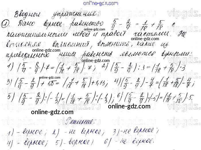 Готовые домашние задания по Алгебре за 7 класс Учебник Колягин, Ткачёва УМК 2012 - Параграф 6 Вводные упражнения 1