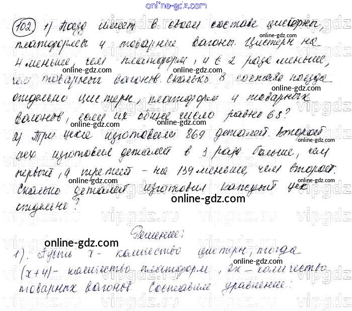 Готовые домашние задания по Алгебре за 7 класс Учебник Колягин, Ткачёва УМК 2012 - Упражнения 102