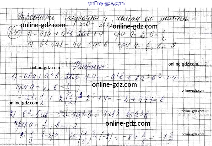 Готовые домашние задания по Алгебре за 7 класс Учебник Колягин, Ткачёва УМК 2012 - Упражнения 230