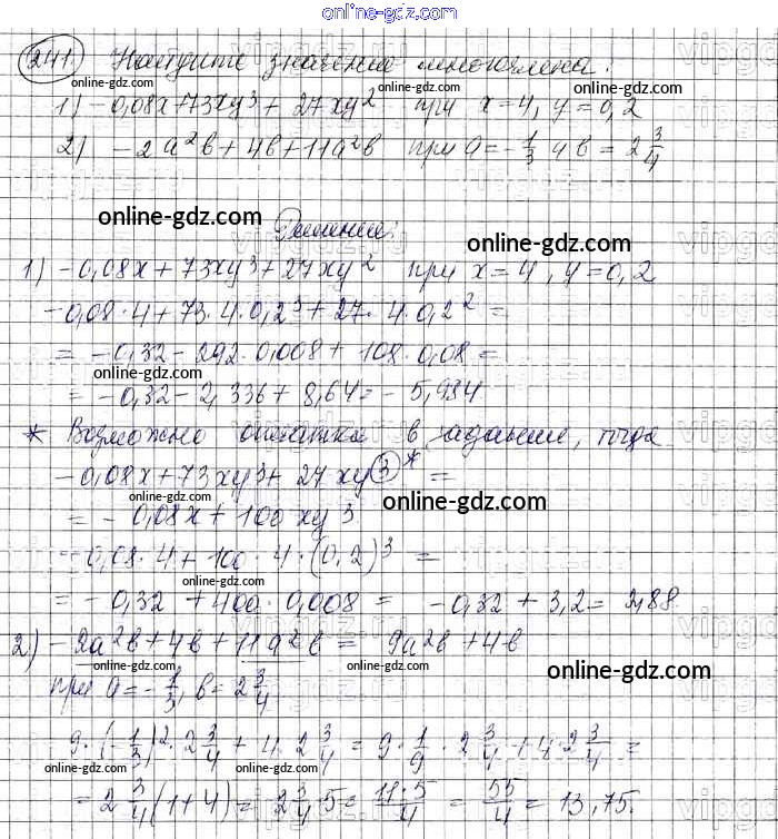 Готовые домашние задания по Алгебре за 7 класс Учебник Колягин, Ткачёва 2012 - Упражнения 241