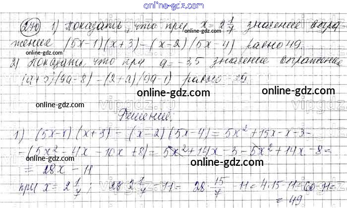 Готовые домашние задания по Алгебре за 7 класс Учебник Колягин, Ткачёва УМК 2012 - Упражнения 270