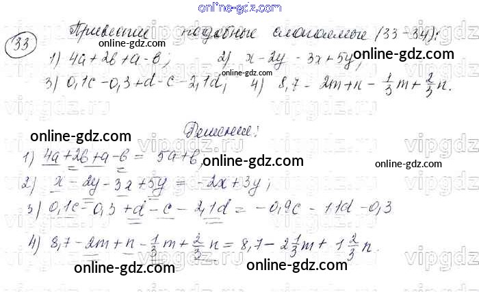 Готовые домашние задания по Алгебре за 7 класс Учебник Колягин, Ткачёва УМК 2012 - Упражнения 33