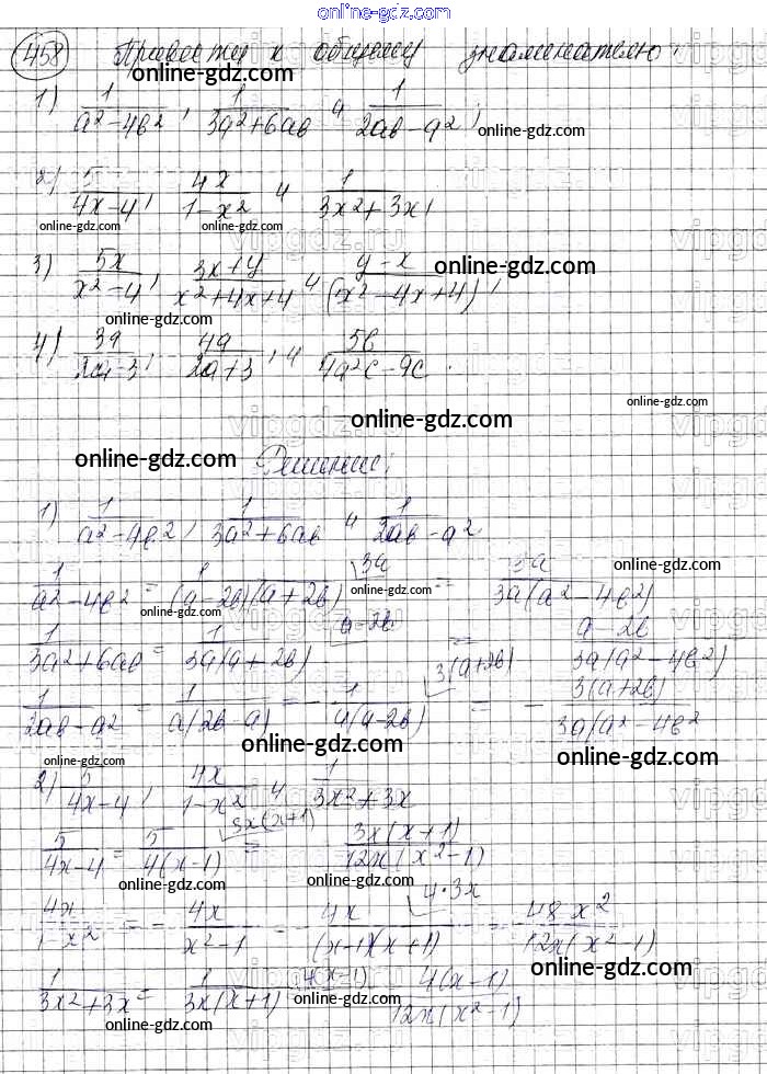 Готовые домашние задания по Алгебре за 7 класс Учебник Колягин, Ткачёва УМК 2012 - Упражнения 458
