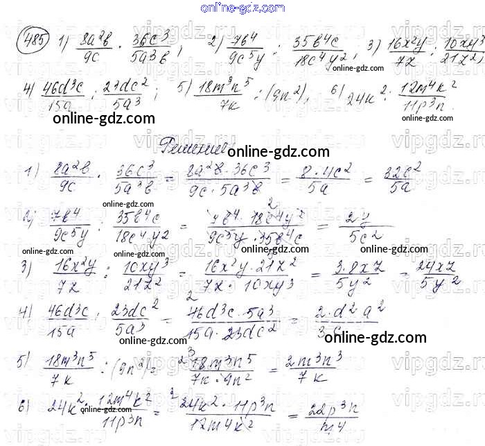 Готовые домашние задания по Алгебре за 7 класс Учебник Колягин, Ткачёва УМК 2012 - Упражнения 485